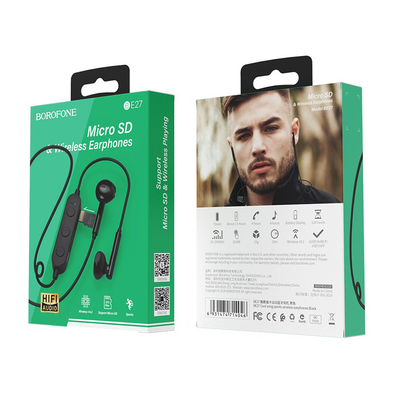 Беспроводные внешние наушники Borofone BE27 Cool song используется для прослушивания музыки по беспроводной связи Bluetooth. Изящный дизайн идеально подойдет всем без исключения. Благодаря мощному аккумулятору, наушники без подзарядки могут проработать около 4 часов. Время зарядки гарнитуры 1,5 часа. Подходит для мобильных устройств на любой платформе, это может быть как iOS, так и Android. Пульт управления находится на проводе, на нем расположено 4 кнопки и микрофон. С Borofone BE27 Cool song Вам гарантирован чистый и динамический звук.